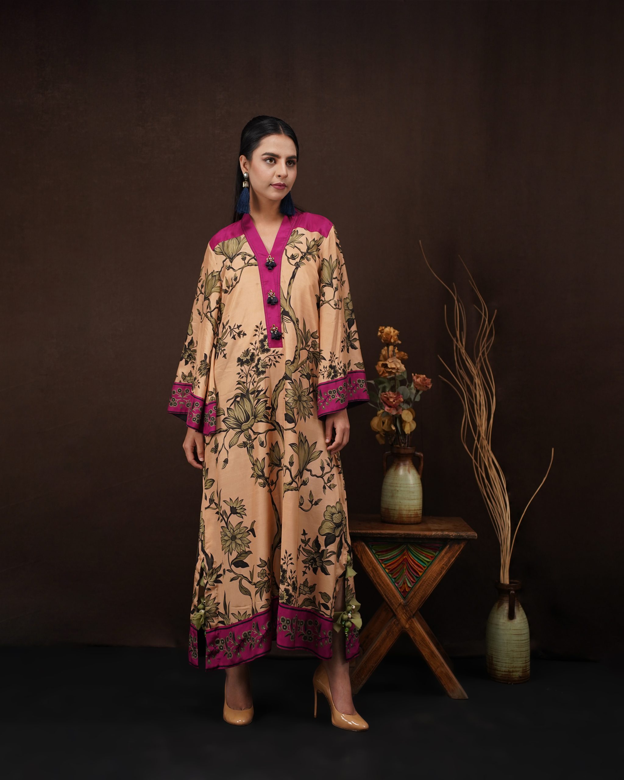 Elevate your wardrobe with this beautifully crafted kaftan by Affiya’s, designed for women who appreciate effortless elegance and modern comfort. Featuring a sophisticated digital print on pure fabric, this piece blends timeless style with contemporary fashion.