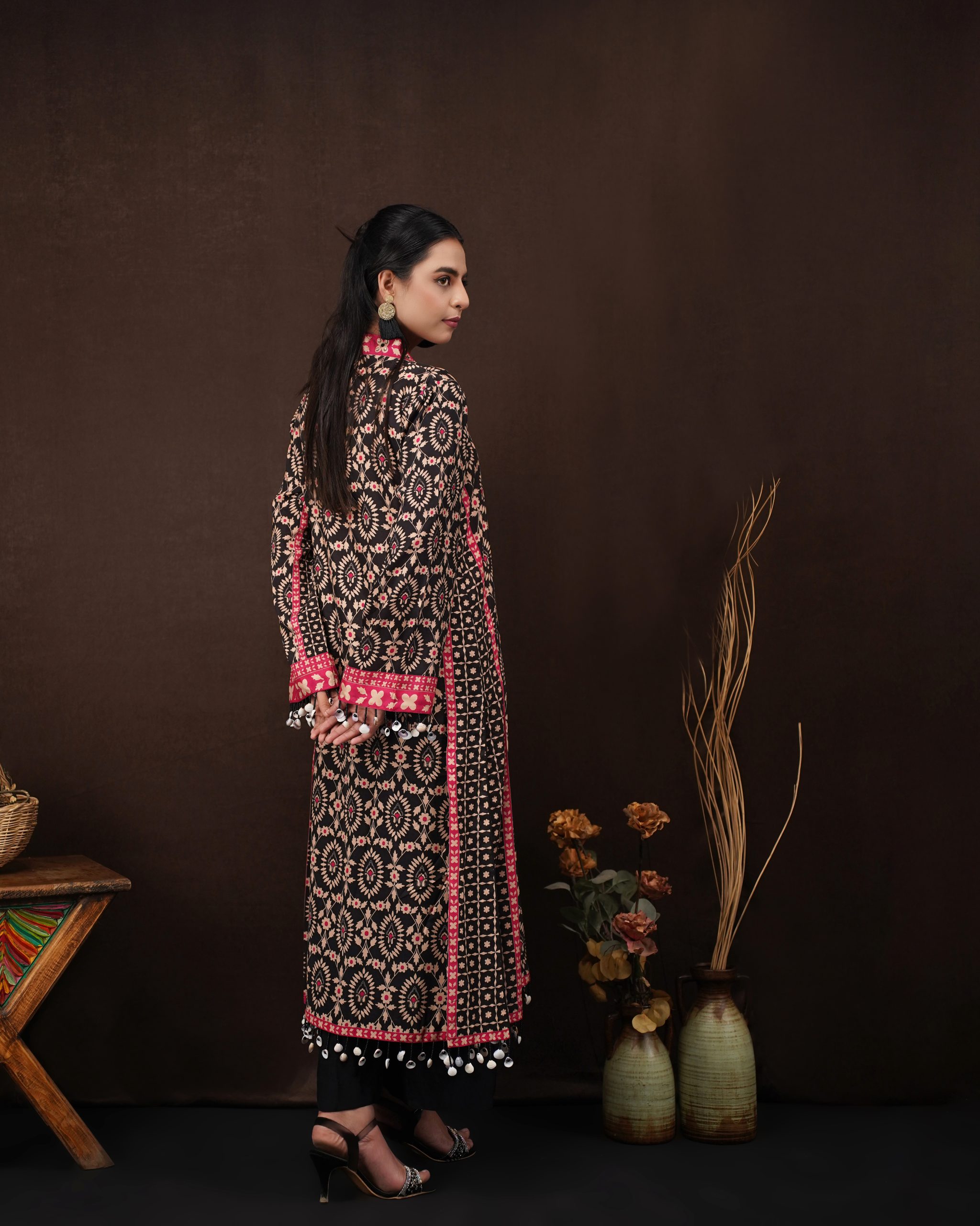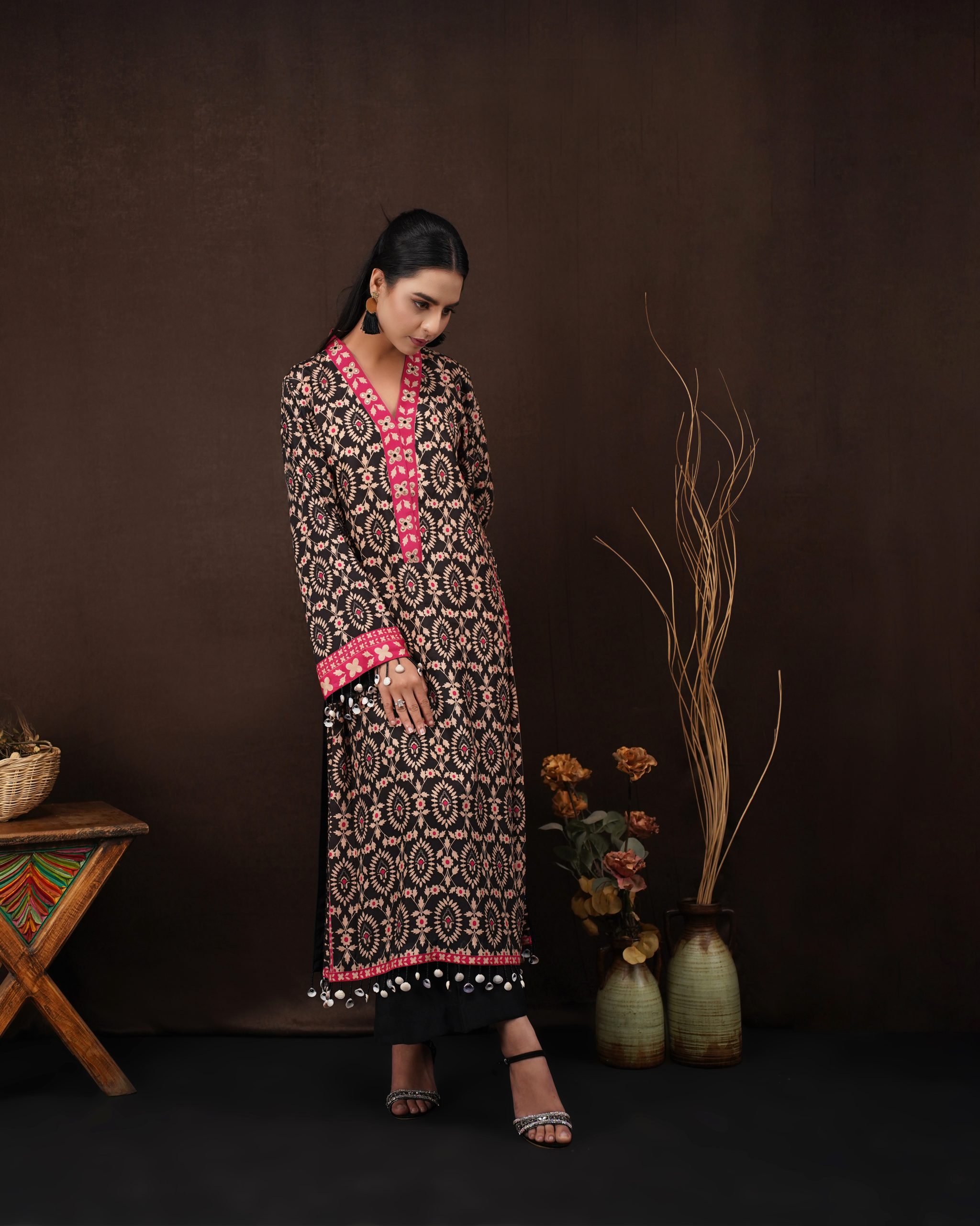 Affiya’s – 2 Piece Printed Black Silk Kaftan