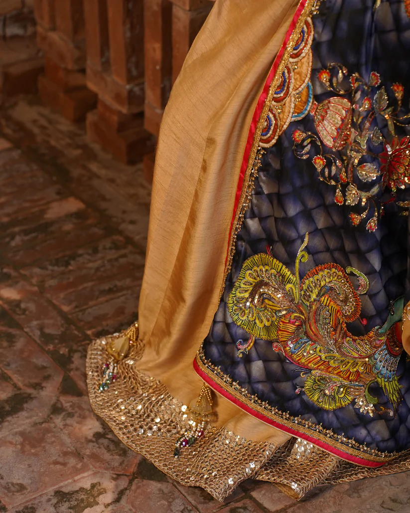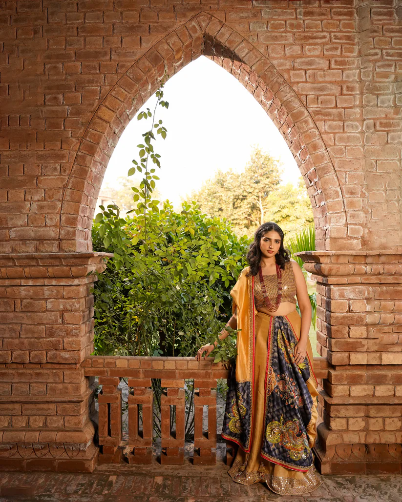 Radiant and regal, Zarnoor is a skin-toned golden shawl from the Dastaan-e-Reet collection, featuring full embellishments and highlighted work along printed borders. With a refined lining and meticulous finishing, it drapes gracefully, perfect for festive and formal occasions.