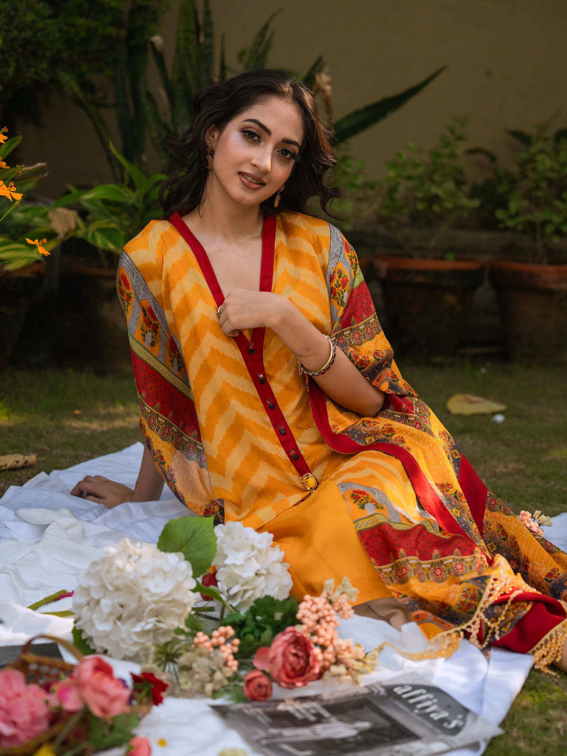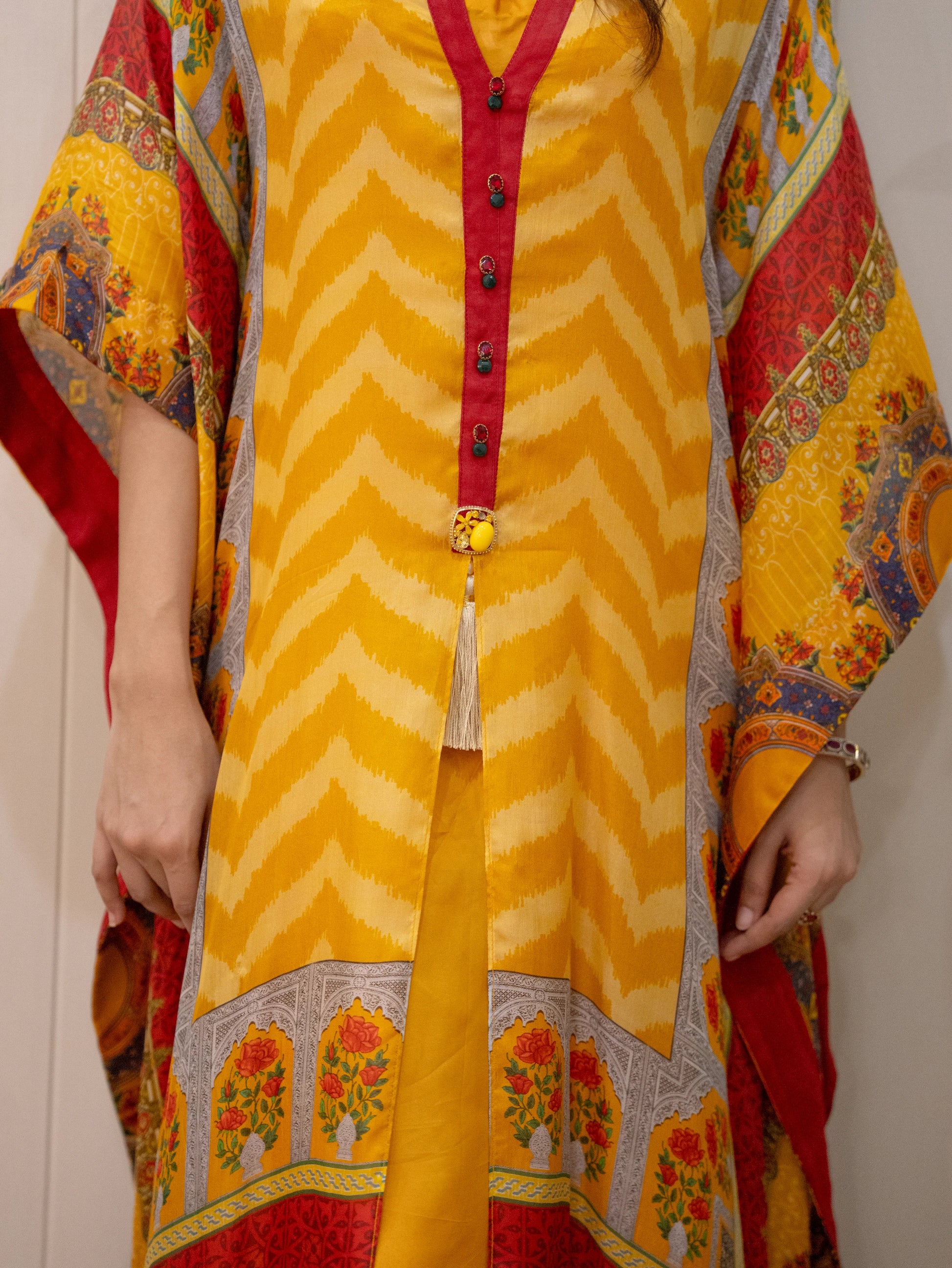 Step into timeless charm with Auric Dawn — a pure silk kaftan that captures vibrance, grace, and contemporary elegance.