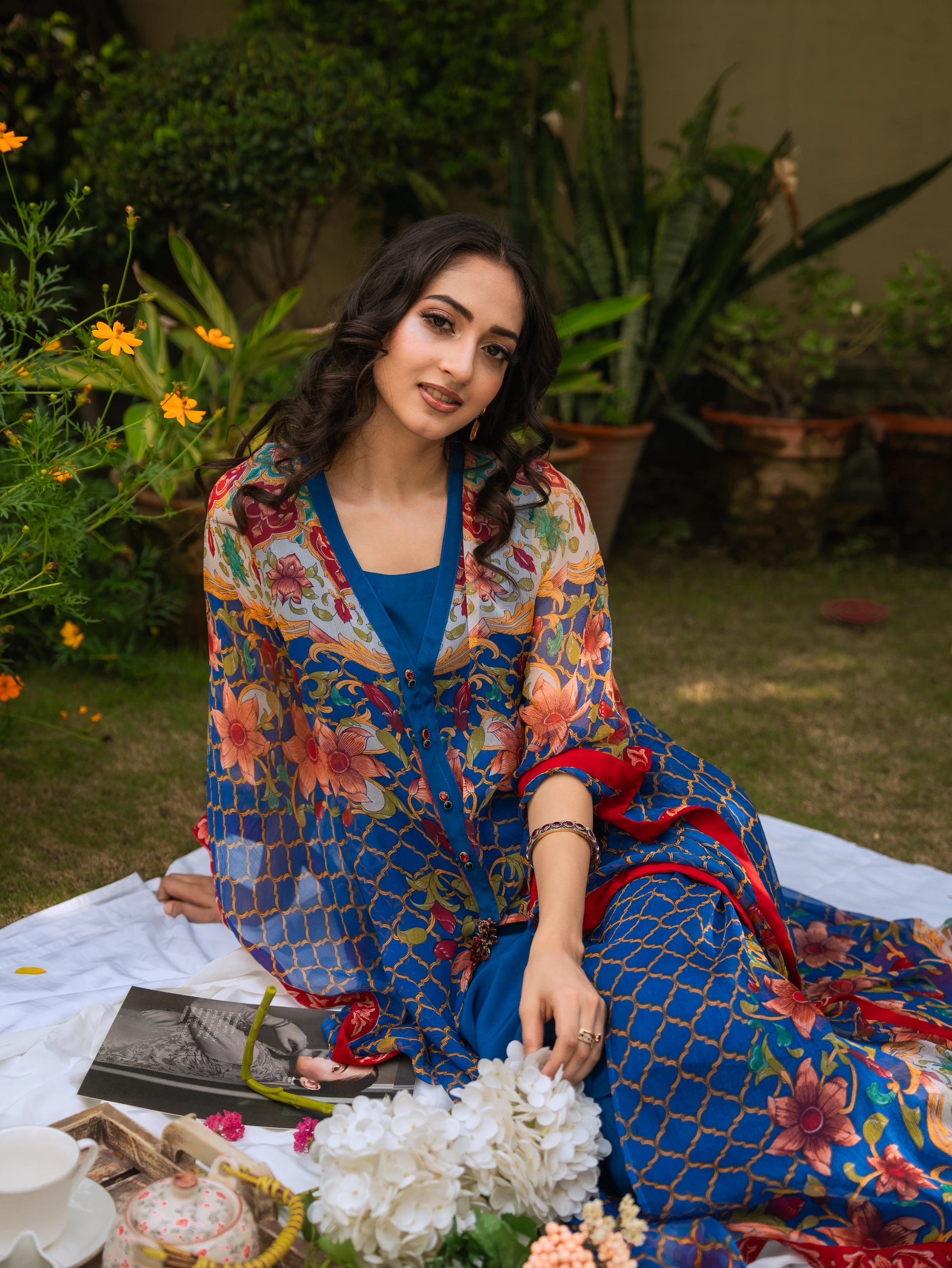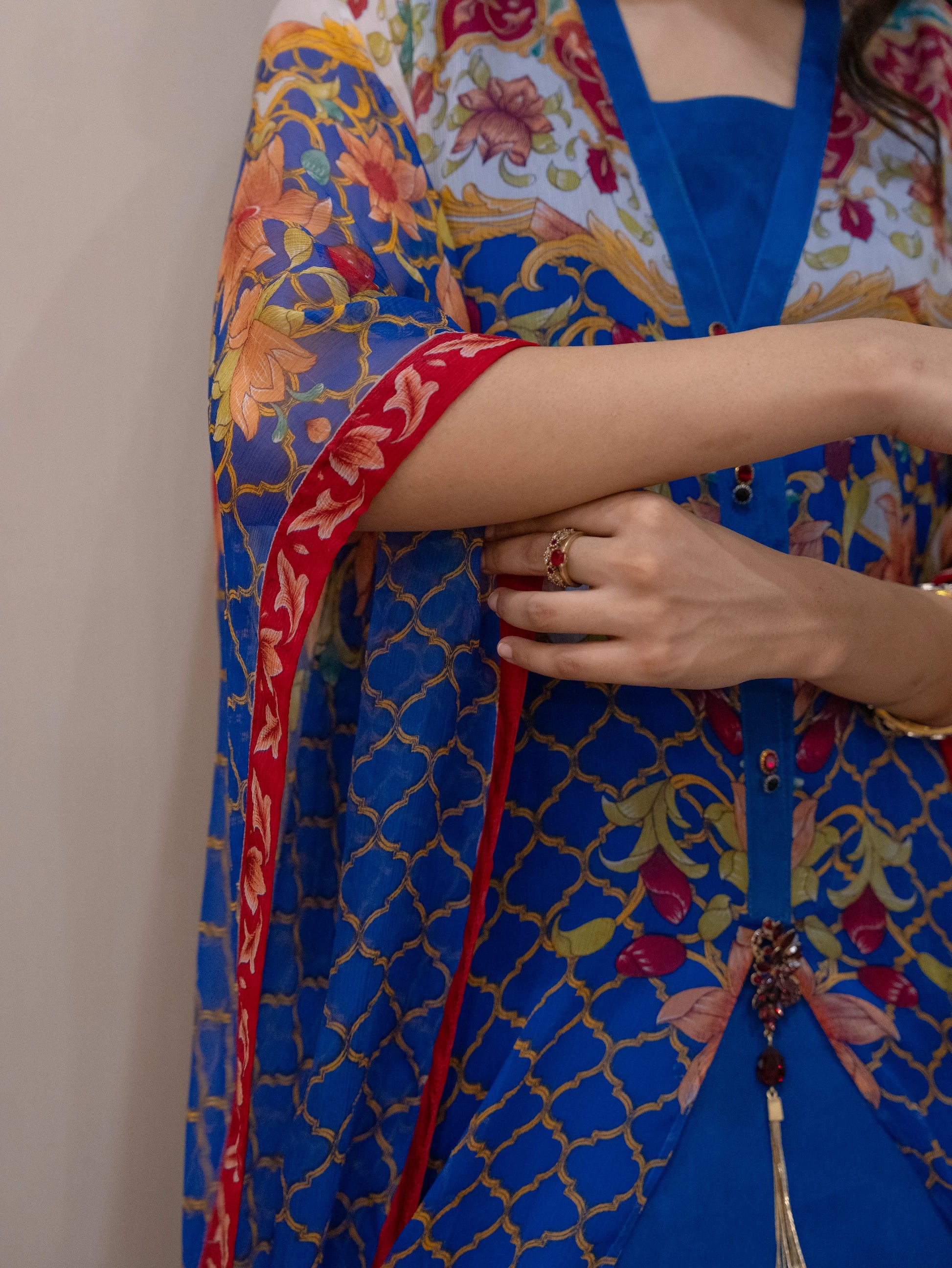 The lightweight chiffon fabric drapes gracefully, offering fluid movement and refined comfort. Perfect for parties, festive occasions, and elegant evenings, Midnight Sapphire is a statement piece for women who value both luxury and ease.