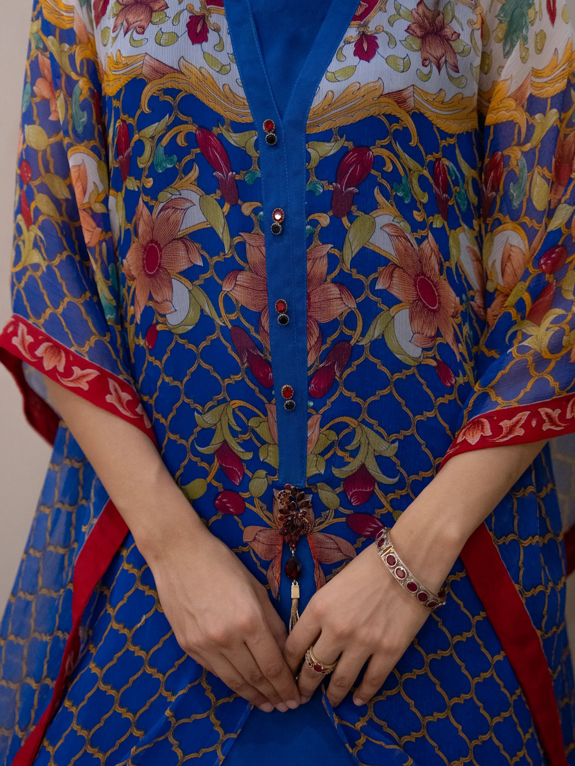 Elevate your wardrobe with Midnight Sapphire — a chiffon kaftan designed for the modern woman seeking both luxury and grace.