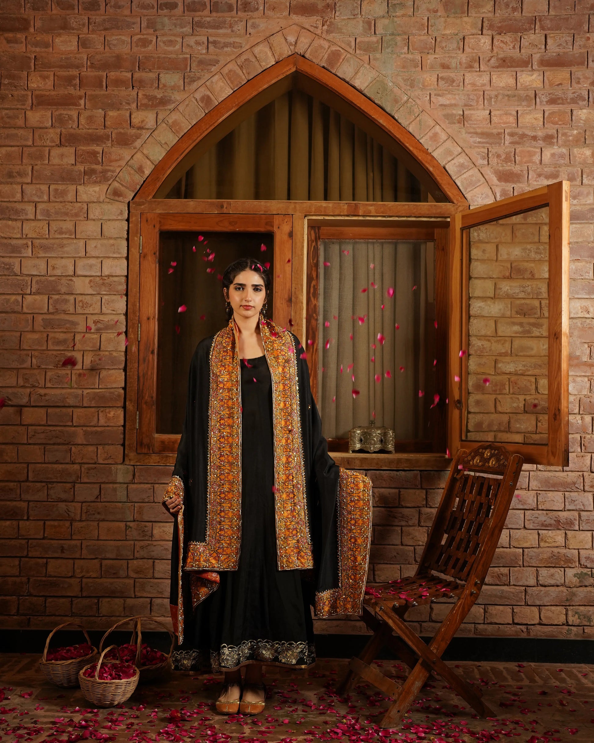 Bold and graceful, Shab-e-Khaas is a pure raw silk black shawl from the Dastaan-e-Reet collection, featuring intricate decorative work across the surface with heavy, detailed craftsmanship along the borders. Finished with precision and elegance, it drapes beautifully, making it a refined choice for festive and formal occasions.